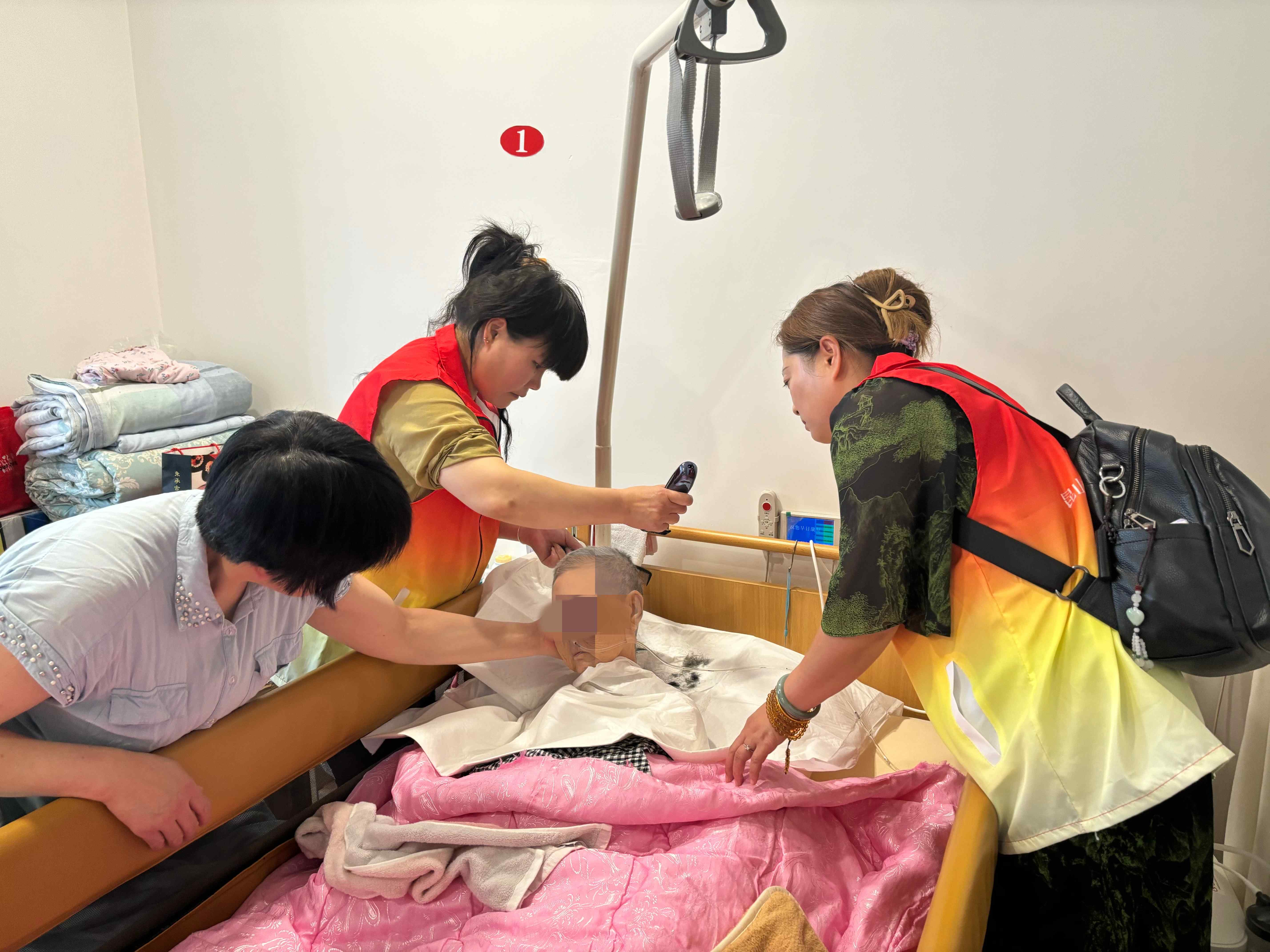 7月30日一早,蔚舟志愿者团队队员来到市福利院,为老人们理发。据悉,蔚舟志愿者团队是这里的“老熟人”了,因为他们定期上门给老人免费理发,同时还会和老人们聊聊家常、谈谈心。“我们为老人上门理发已经很多年了,希望他们足不出户也能享受到贴心的服务。”志愿者侯正康说。志愿者杨阿姨是一名“多面手”,她不仅学习护理康复,还自学了理发技能。“我本来也不是理发师,为了做公益我才学的,想为社会贡献微薄之力。”志愿者杨阿姨表示。
