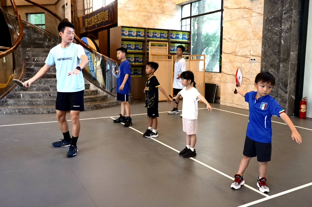 一早,记者在花桥棕榈湾小区看到,大人、孩子在专业教练的带领下练习发球,不到一个小时,大家就基本掌握了打匹克球的动作要领,开始相互切磋。今年暑假,何思辰一次偶然的机会接触到匹克球,令他印象十分深刻,并在妈妈的支持下开始学习打匹克球。随着“砰”的一声,球朝他飞来,触地后猛然弹起。何思辰迅速反应,球拍一挥,轻松将球打出去。