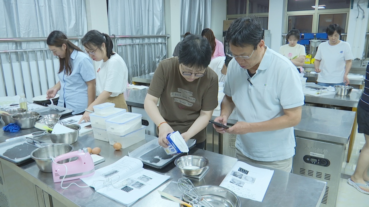 记者看到,当天的西式面点制作课程中包含了西点种类及工具设备认识等理论,以及肉松小贝、奶冻、酥皮泡芙等西点的实操制作。“非常感谢有这样的活动,让我可以学到一些生活技能,在家可以给孩子做点蛋糕、面包之类。”学员闫莹说。闫莹是江苏天瑞仪器股份有限公司的一名硬件工程师,下班后前来提升生活技能,让“8小时”后的生活更加充实和精彩。另一位学员李桓则表示,他是一位面点爱好者,利用业余时间前来学习一项技能,提升生活品质。