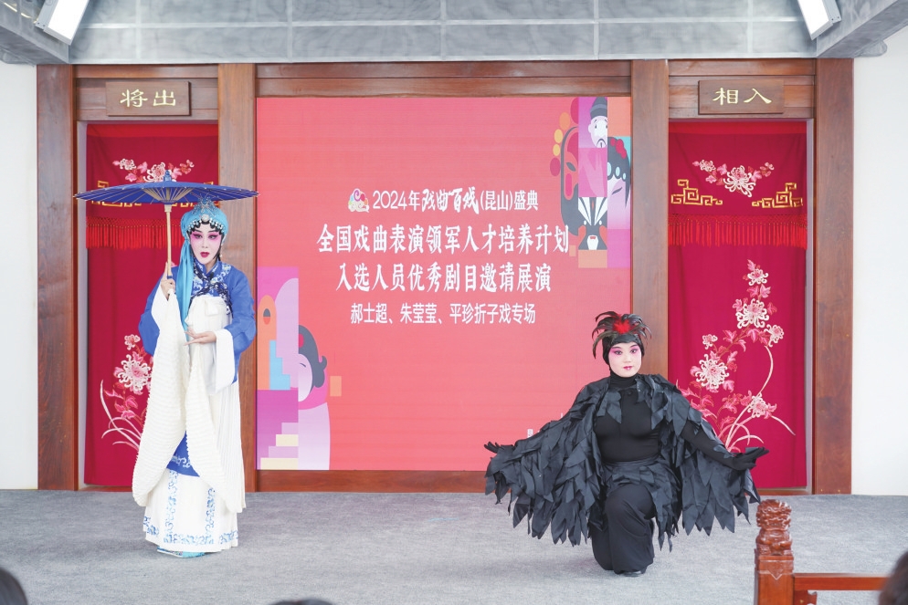 梨园竞秀,好戏连台。9月8日,2024年戏曲百戏(昆山)盛典全国戏曲表演领军人才培养计划入选人员优秀剧目邀请展演“朱莹莹、平珍、郝士超折子戏专场”,在戏曲百戏博物馆精彩开演。浓浓地方戏韵、多彩民族风情,让观众近距离感受到了戏曲艺术魅力,尽享传统文化盛宴。