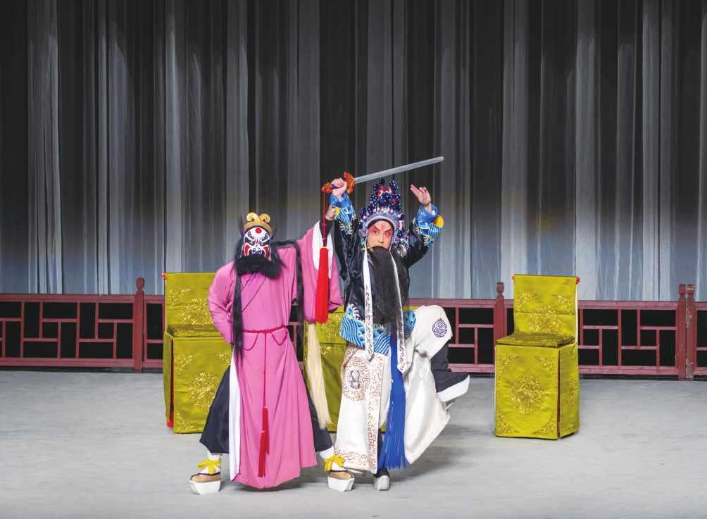 本场压轴的是京剧《斩马谡》,马谡是三国时期蜀汉的官员和将领,以才智和军事才能著称,是蜀汉丞相诸葛亮的重要助手之一,戏中,蜀魏交兵,司马懿统领魏军兵至祁山,马谡请令前往。行前,诸葛亮再三嘱咐,切须慎选营地,并命王平同往相佐。马谡刚愎自用,不听王平谏言,扎营山顶,结果遭到魏军围攻,街亭失守。诸葛亮为严明军纪,虽惜马谡之才,但还是挥泪斩之。此出戏的主演是国家一级演员韩巨明,其嗓音高亢洪亮,表演细腻,将马谡的自信、刚愎自用以及最终的悔恨和悲剧命运展现得淋漓尽致,使观众对这一历史人物有了更深刻的理解。