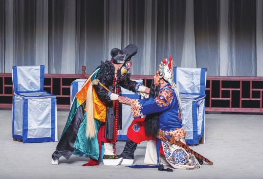 当晚七点半,柳子戏传统剧目《五台会兄》拉开了本次专场的序幕。该剧讲述了北宋金沙滩一战后杨家将的命运故事。杨五郎心灰意冷,到五台山出家。杨六郎前往昊天塔盗回杨令公的骸骨,归途中路过五台山借宿,与杨五郎意外相遇,但因分别已久,起初两人不敢相认。经过一番互相盘问,才确认对方是自己久别重逢的亲兄弟。此时,辽兵追来,杨五郎出手相助,杀退了追兵。最后,兄弟二人依依洒泪而别。此场演出,演员表演程式粗犷豪放,风格独特,人物动作设计惟妙惟肖,唱腔流畅自如、圆润悠扬,念白抑扬顿挫,引得台下观众连连喝彩。