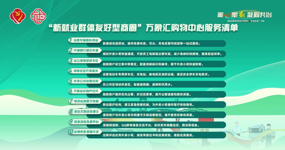 启动仪式上,全市首批30个新就业群体友好场景建设示范点发布,为新就业群体工作生活提供便利,示范带动全市有关单位整合服务资源、完善服务内容、提升服务标准。同时,我市“新就业群体友好商圈”标识揭牌,昆山万象汇党群服务点率先发布新就业群体友好商圈服务清单。