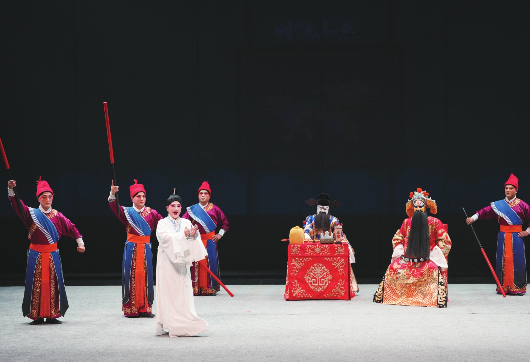 随后,山西省大同市晋剧院带来了晋剧《谢瑶环·大堂》。该剧移植于京剧,讲述了唐朝时期,右台御史谢瑶环敢于秉公执法,为民除害,为此遭到了奸臣来俊臣、武三思的诬陷报复,并被私设公堂、曲解圣意,严刑逼供、诱导威胁。大堂上展开了一场正义与邪恶的较量,忠臣与奸佞的抗争。李蕊在剧中饰演的谢瑶环,女扮男装,完美诠释了大义凛然、不畏强权的女英雄本色。