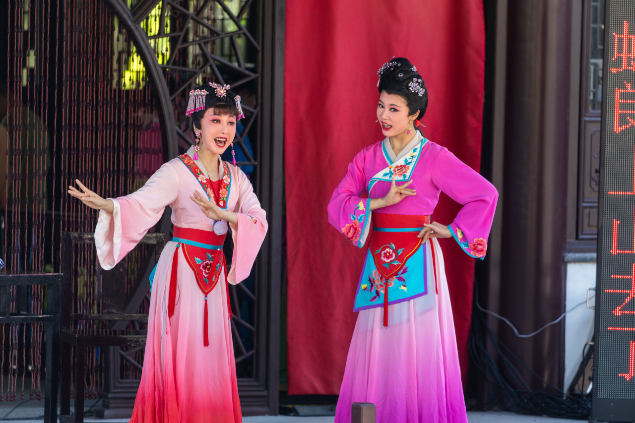 9月22日,来自天水市西秦腔研究院、贵州省花灯剧院的多位名家带来的秦腔《谢瑶环·花园》《背妹》和花灯戏《七妹与蛇郎》在亭林园昆曲博物馆精彩上演。