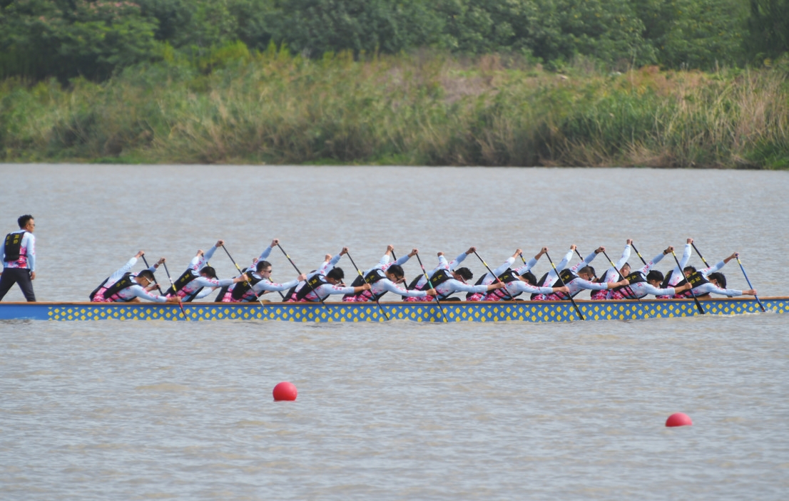 “鼓声三下红旗开,两龙跃出浮水来。”鼓槌落,船桨起,一瞬间,岸上旌旗猎猎、锣鼓喧天、呼声如雷,江面挥桨劈浪、水花激溅、舟行如飞。队员们随着锣鼓敲打的节奏一边喊着号子,一边弯腰低头划桨,展现出一往无前的拼搏斗志和团结齐心的合作精神。河岸边,市民游客人头攒动,欢呼声、鼓励声此起彼伏,飞溅的浪花与围观呐喊声交织,好不热闹。经过激烈角逐,昆山先行队斩获22人龙舟200米和500米直道双料冠军。