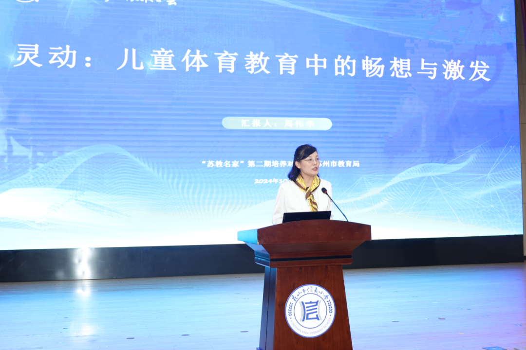 现场,周伟华以《灵动:儿童体育教育中的畅想与激发》为题,阐释了对“灵动体育”的理解。十多年来,她逐渐探索出“灵动体育”课程、“灵动体育”教学、“灵动体育”活动、“灵动体育”支持系统等一系列新范式,凝练出了“灵动体育”教育主张。许兵以《志远景明:给梦想以力量,给行动以翅膀》为题,分享了他在学校管理及语文教学方面的主张。“给梦想以力量,给行动以翅膀,既是我对自己工作的要求,也是我对学生成长、教师发展的期许。”许兵说。