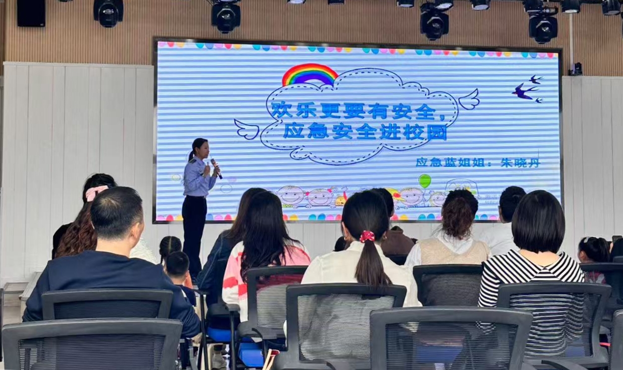 在金塘幼儿园,孩子们自己创作的卡通版安全标志标识分散在每个角落,园内还设置了安全读书角、安全小达人作品展等,让孩子们处处感受安全文化熏陶。当天,金塘幼儿园还举办了“家长开放日”,一堂由“应急蓝姐姐”带来的安全主题课生动开讲,引导家长与孩子一起参与应急挑战、掌握应急技能。