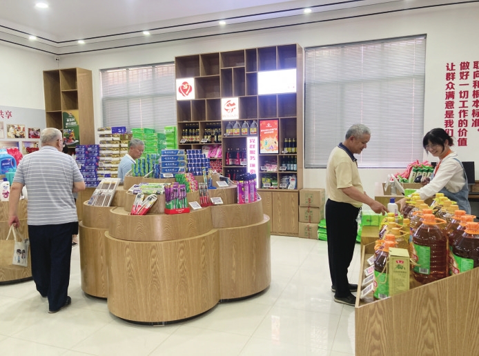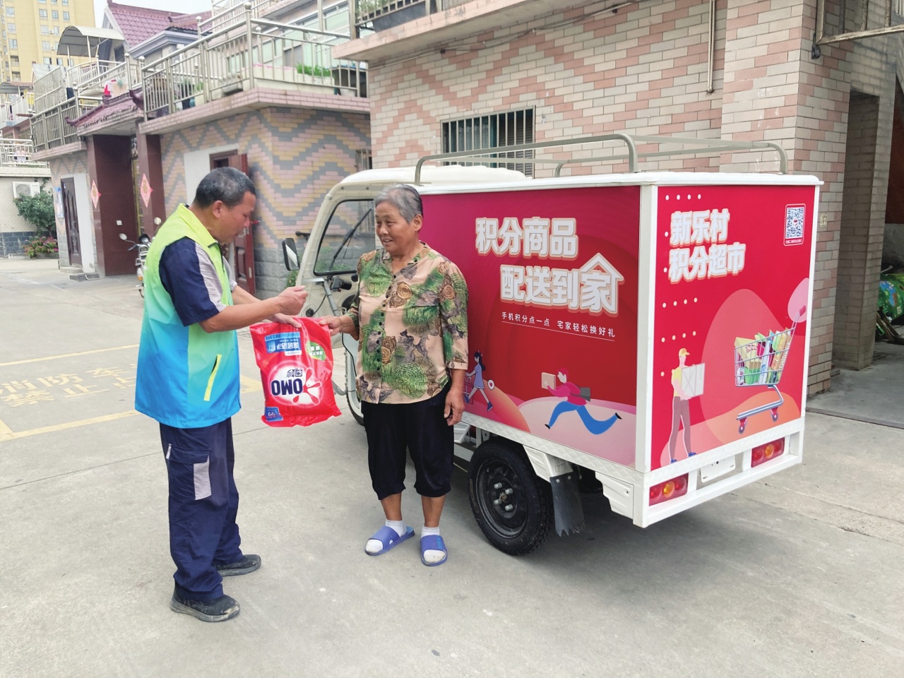 “我换油”“我要牛奶”……上午九点,新乐村的积分超市一开门就热闹起来,超市货架上整齐摆放着大米、食用油、洗衣液等日用品,每件商品下都标注着不同的积分数额,村民带着“积分”前来挑选货架上的商品。在新乐村,积分除了买东西,还能兑换全屋保洁、家电维修、课程培训等。
