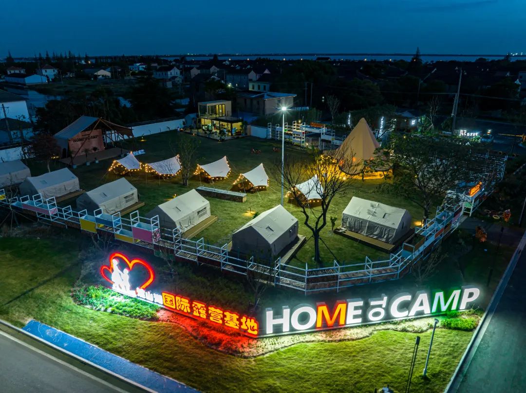淀山湖国际露营基地可同时容纳200人露营。基地内含“郊野会客厅”“追日天幕”“露营夜宿”、咖啡水吧等功能区域。结合当下的户外文化、咖啡文化、绿色风尚,基地把田园乡野植入都市生活,打造诗意栖居的人文家园。
