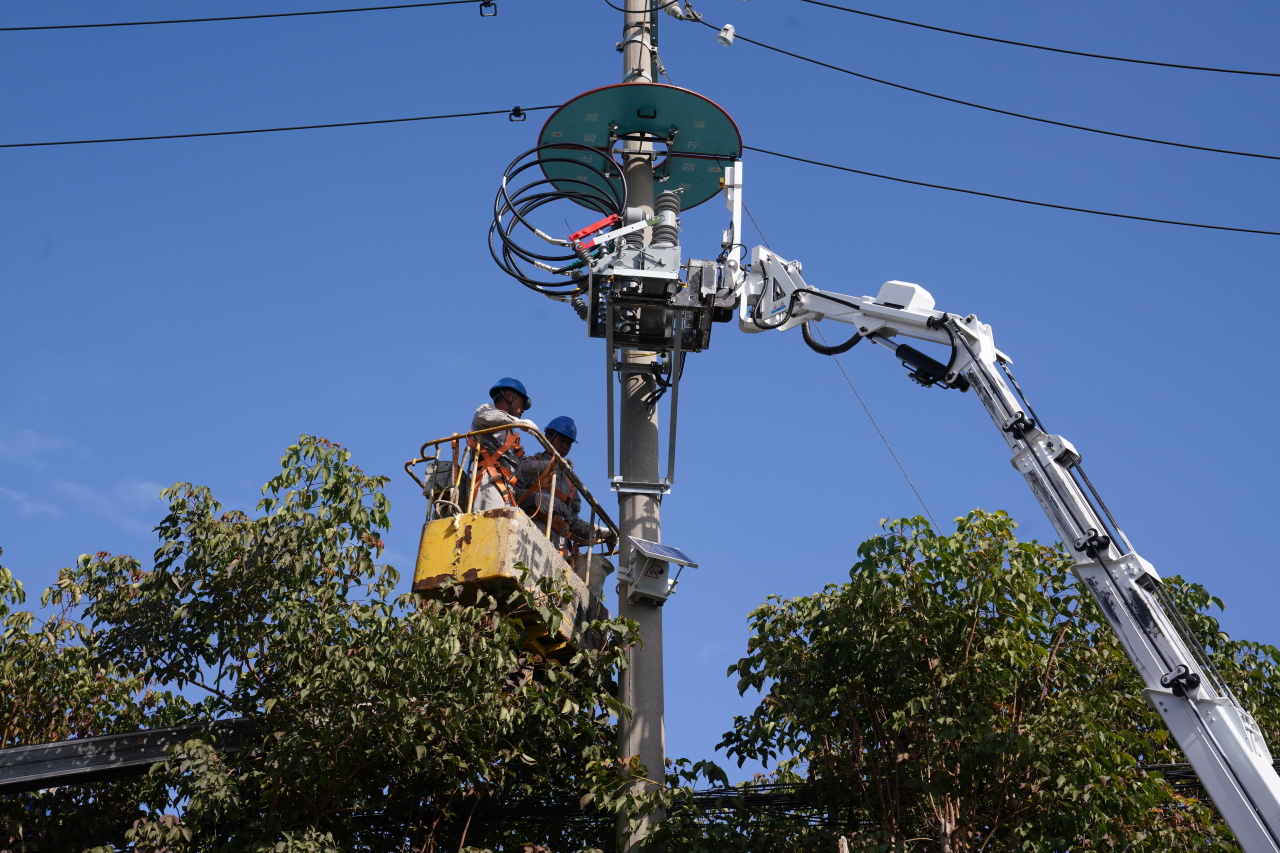 昆山首次使用自主研发举升平台安装线路开关