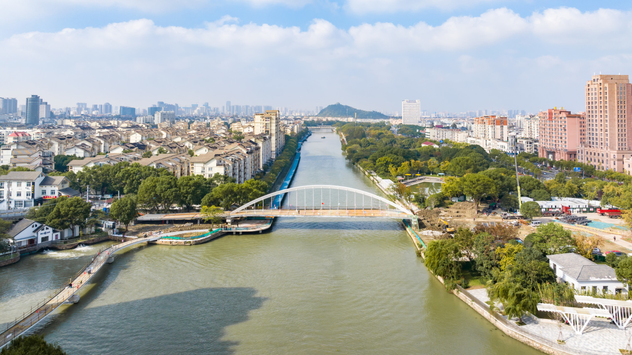 东樾河桥改建项目是市重点实事工程——环城滨江绿道(二期)的重要部分,主桥单跨65米,采用钢系杆拱桥,宽度由北侧14米过渡到南侧8米,桥重约323吨。原东樾河人行桥建于上世纪八十年代,由于年代较久,安全性、便利性已难以满足实际需求。新建东樾河桥工程主要包括对原东樾河人行桥进行改造,架设桥梁衔接爱河小区与青江秀韵滨江绿地。
