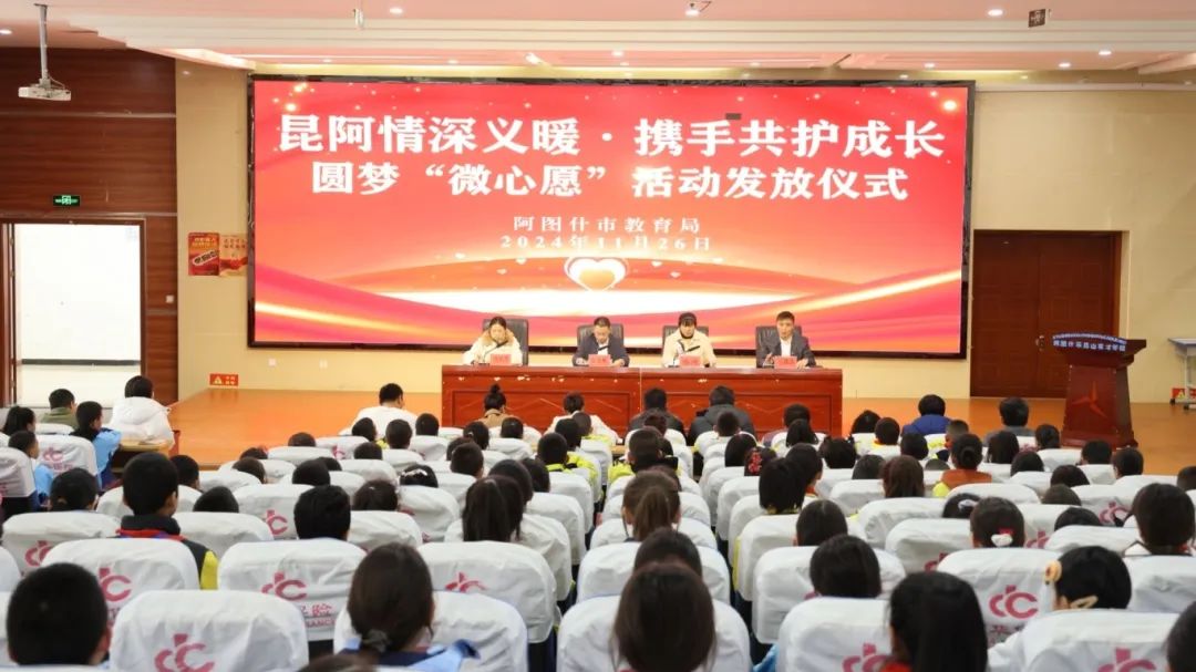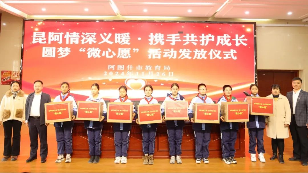 实现一个心愿,温暖一颗心灵。11月26日,昆山市慈善总会联合昆山援疆工作组、新疆阿图什市教育局开展“昆阿情深义暖·携手共护成长”圆梦“微心愿”活动,为阿图什市500名品学兼优、家庭困难学生发放学习用品、体育用品、生活用品等物资,共计15万余元。