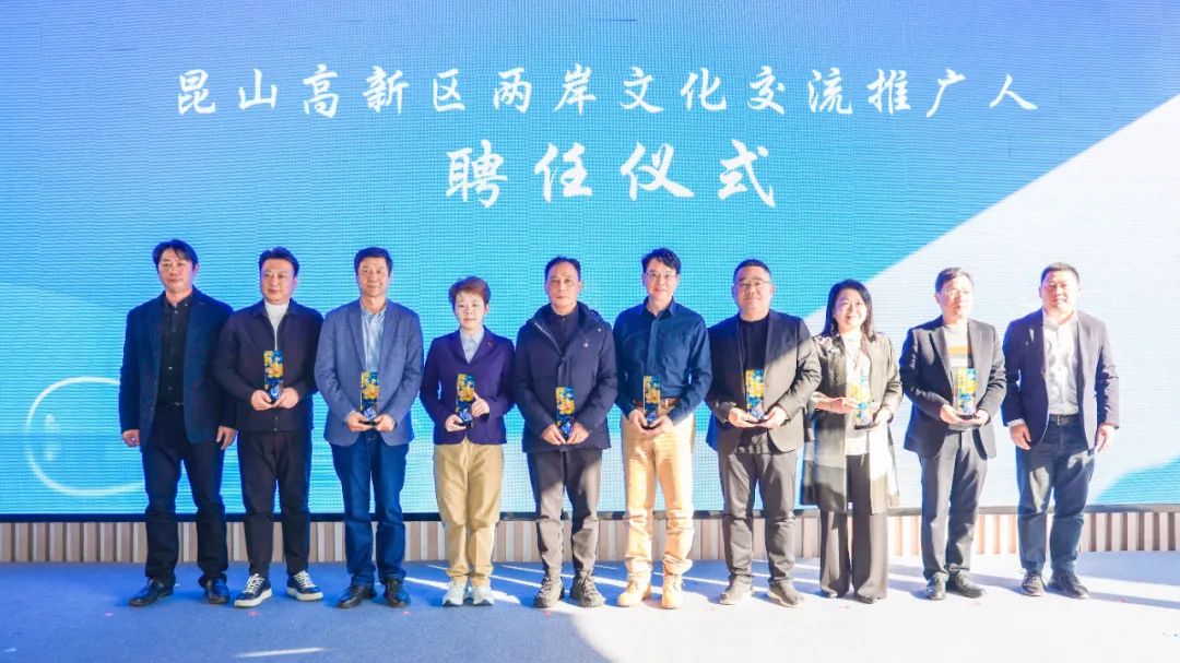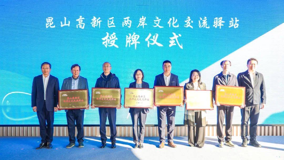 昆山高新区两岸文化交流暨中华传统文化体验主题活动启动,8名昆台两地的文艺热心人士被聘为昆山高新区两岸文化交流推广人,6家单位成为昆山高新区两岸文化交流驿站并授牌,上海徐汇台协工委会、苏州高新区台协会与昆山市台协会高新区F1、F2分会缔结友好协会,将进一步加强沟通,推动三方在更多领域开展深度合作,共同开创发展新局面。现场还举行了《玉峰三宝图》瓷板画发布仪式与《高新印象·玉见繁华》书画长卷赠送仪式。