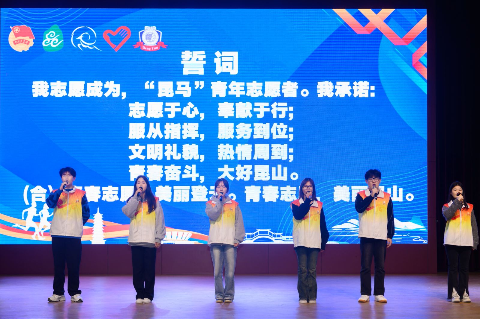现场,为出征志愿者代表授旗,全体志愿者庄严宣誓。业务培训会上,全体志愿者学习了马拉松常识、赛事信息以及志愿者礼仪等。“很高兴作为一名青年志愿者参加昆马赛。希望通过昆马赛贡献自己的青春力量,更好地服务昆山。”志愿者董书君说。