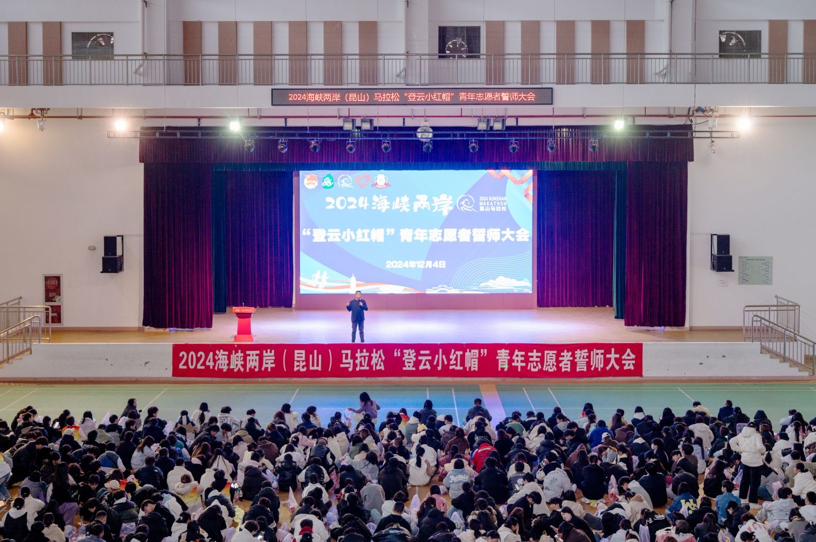 12月4日下午,2024海峡两岸(昆山)马拉松“登云小红帽”青年志愿者誓师大会在昆山登云科技职业学院举行。