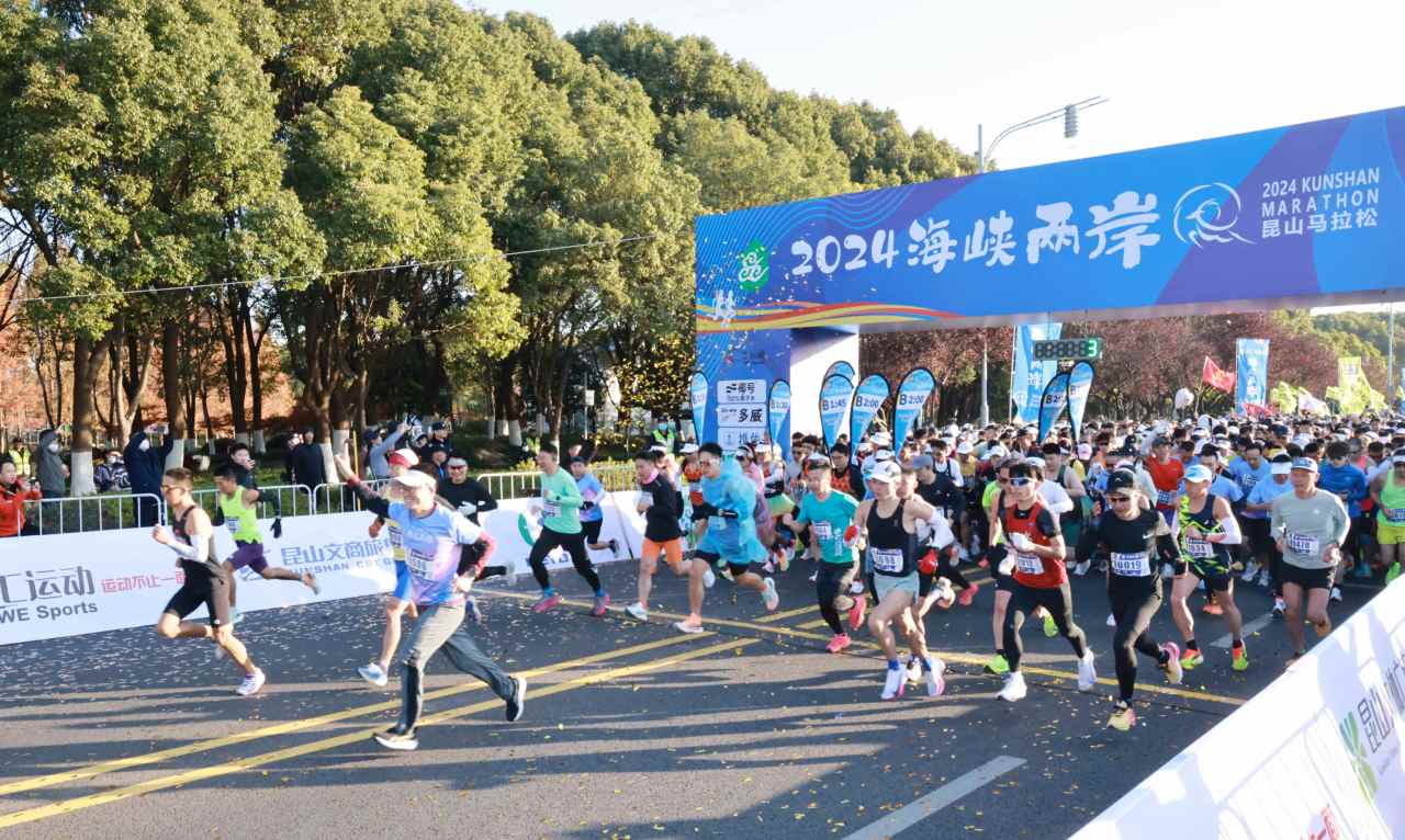 12月8日,2024海峡两岸(昆山)马拉松鸣枪开跑。城西体育中心呐喊声、欢呼声、加油声此起彼伏,1.6万名参赛者以奔跑之名,赴昆山之约。赛事期间,包罗万象的“昆山市集”也“搬”到现场,跑者、市民、游客在乐享体育运动魅力的同时,逛市集、品美食、参与趣味活动,多维度体验昆山之美,解锁“昆马”之乐。
