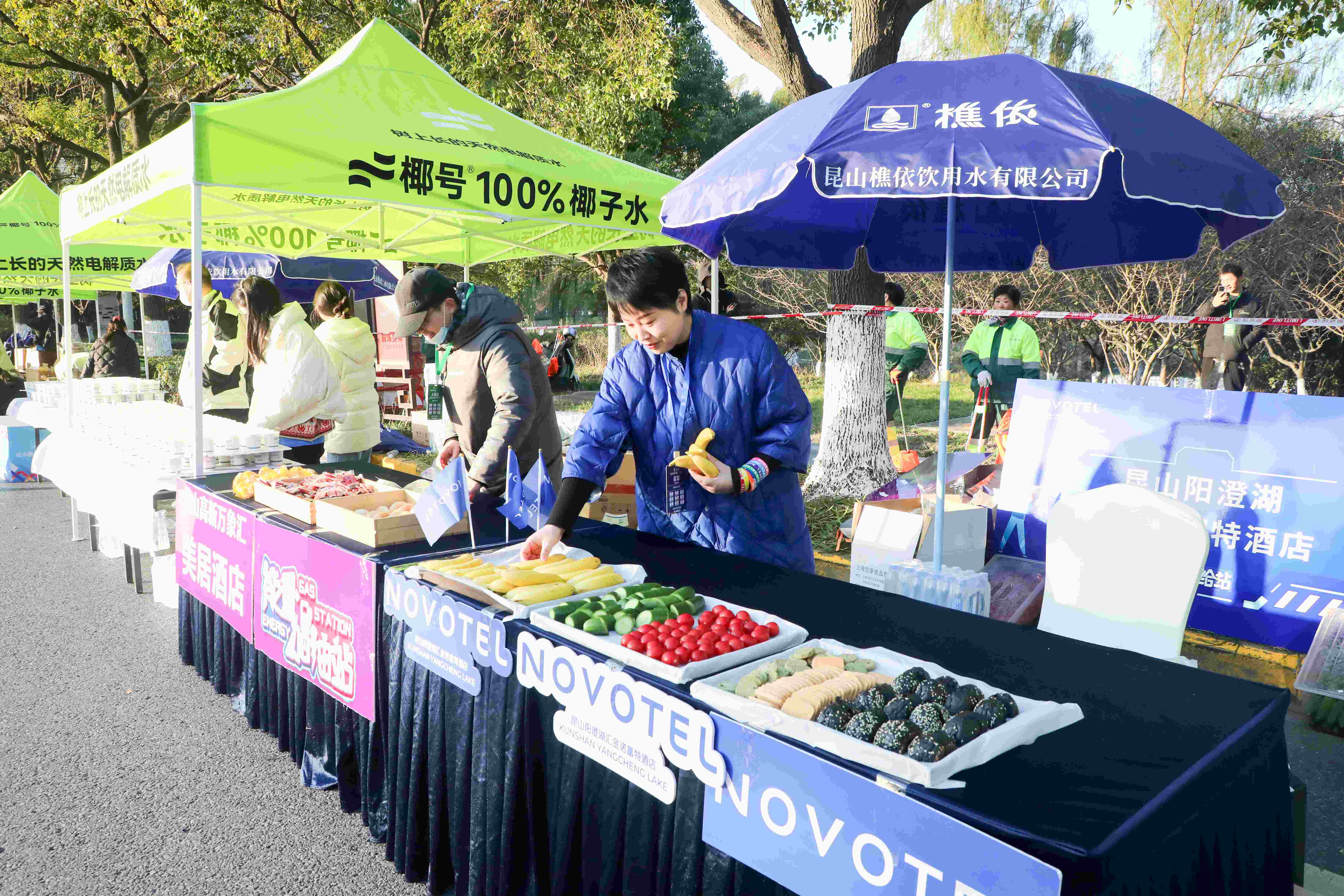 开赛之前,赏食赏味、文创周边、运动好物等不同行业与品类的30多家赞助商早早“就位”,市集火热“开市”,衣食住行、吃喝玩购一应俱全。饮品、方便速食、休闲零食等10余家食品类赞助商带来丰富的展品,吸引众多市民、游客品尝、购买;运动、地产、酒店、金融、快递等行业的众多知名商家也带着满满诚意而来,通过现场体验、趣味游戏等活动与跑者、市民、游客交流互动;昆曲文创、昆山特产等展位更是人气爆棚、热闹非凡。