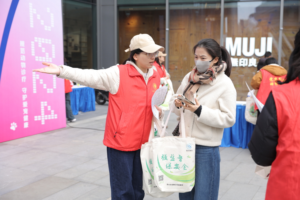 12月7日下午,一场关注诚信诊疗、关爱宠物健康的义诊活动在昆山万象汇举办。昆山市农业农村局组织志愿者和爱心动物诊疗机构在现场为宠物免费体检、免疫接种,向宠物主人开展普法与科普宣传活动。