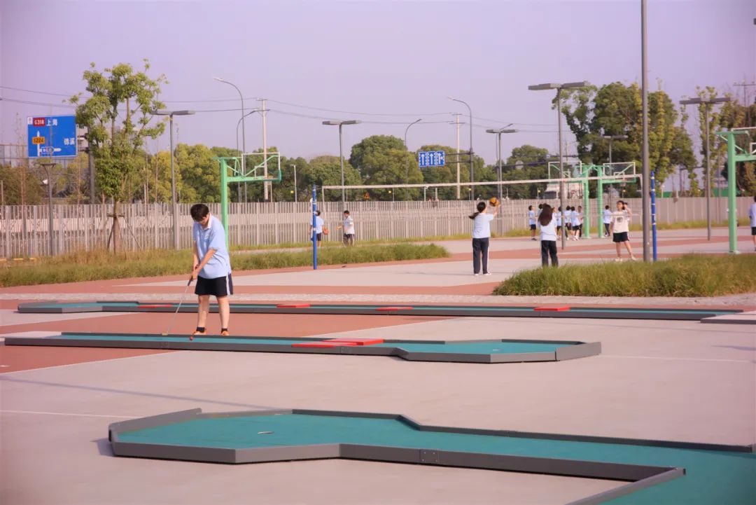 环境建设不仅是衡量一所学校办学水平的重要标尺,也是实施美育的重要载体。手握推杆,瞄准小洞,轻轻一挥,小球按照一定轨迹缓缓落入洞中。在学校的运动区,小众运动迷你高球为校园体育带来别样风景。对于高三年级学生黄奕婷来说,极具挑战性和趣味性的迷你高球运动已成为她学习之余的放松方式。
