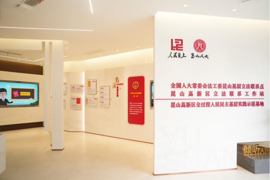12月6日,昆山高新区全过程人民民主基层实践示范基地揭牌。该基地设立“宪法”“人民代表大会制度”“全过程人民民主”以及“基层立法联系点”四个板块宣传内容,向群众展示人民代表大会制度的优越性和强大生命力,让全过程人民民主更具象化。“我们将通过建设‘玉湖民主议事厅’,加强与村、社区联动,将人大协商和基层协商有机结合起来,探索共建共治共享新路径,让全过程人民民主的重大理念在昆山高新区可知可见可触可及。”玉山镇人大主席陆轶峰说。