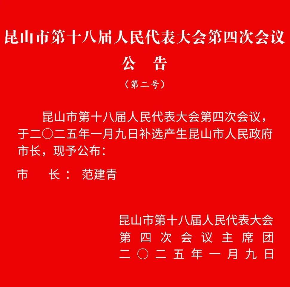 范建青作就职表态时说,大会选举我担任昆山市人民政府市长,我深感万分荣幸,倍感使命光荣,更感责任重大。这一张张选票,是对市委市政府团结带领全市人民实干拼搏、勇于担当所取得成绩的充分肯定,承载了各位代表和同志们的高度信任,更寄托了全市人民群众的殷切期望。昆山是一座底蕴深厚的江南文化名城,更是一方生机勃勃的创新创业热土。我一定倍加珍惜党和人民赋予的神圣职责,倍加珍惜为全市人民服务的宝贵机会,在以陈丽艳书记为班长的市委坚强领导下,在历届政府班子打下的良好基础上,用心谋事、务实干事、团结共事、合力成事,用改革创新、真抓实干的行动,做出扎扎实实、可观可感的业绩,以此来回报全市人民、回报全体代表。我将始终以忠诚立魂,尽心尽力、高效履职;始终以发展为要,奋发有为、开拓进取;始终以民生为本,坚守初心、造福群众;始终以清廉为底,严于律己、做好表率。