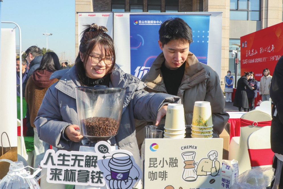 作为“国际咖啡产业之都”,昆山各个区镇、商业区的“年货大集”上,总少不了咖啡的香气,又为这热闹的氛围增添了几分文艺与惬意。一个个精致的咖啡摊位前,咖啡师们熟练地操作着咖啡机,研磨、冲泡,动作行云流水。空气中弥漫着浓郁的咖啡香气,与年味交织在一起,形成一幅蒸蒸日上又悠闲释然的场景。咖啡文创产品也深得大家的喜爱,精美的咖啡杯、有趣的咖啡豆罐,让人忍不住驻足欣赏挑选。