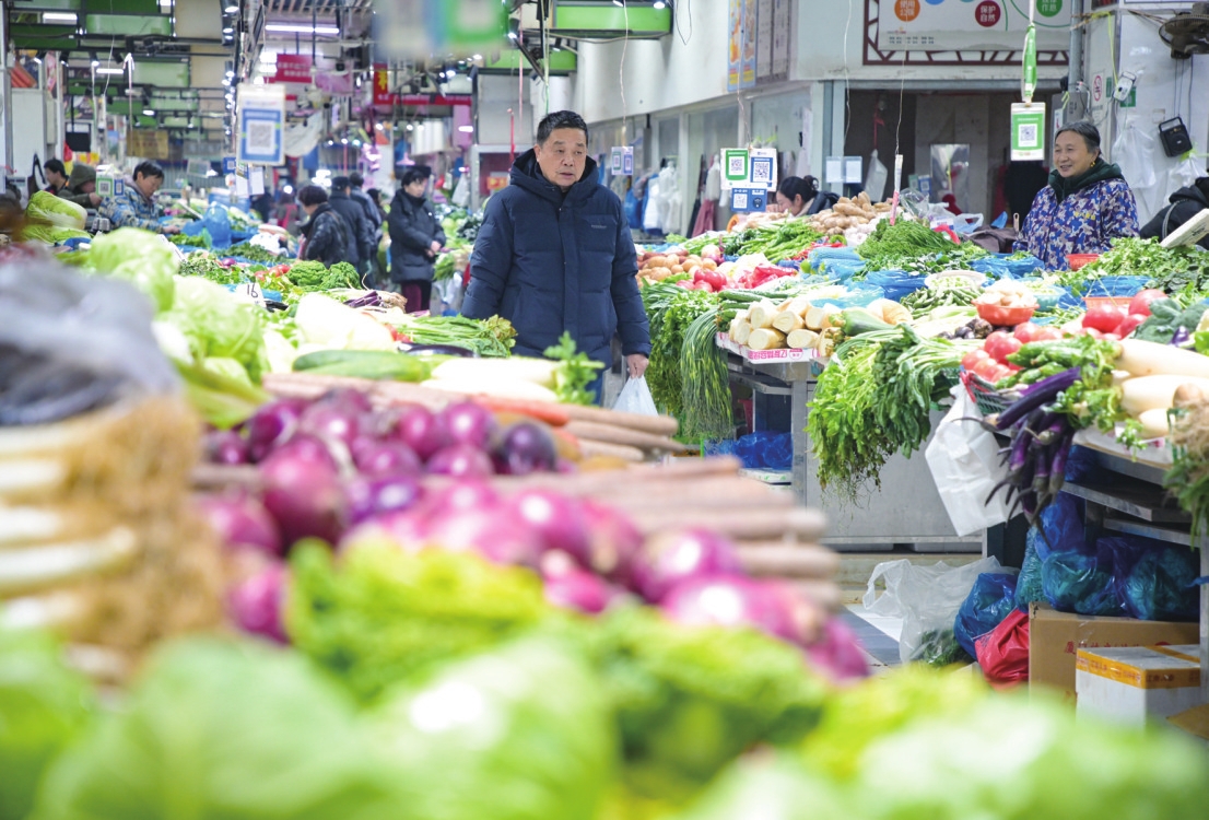 面对春节市场,朝阳新菜场采取多种措施,确保“菜篮子”“果盘子”供应充足和价格稳定。在蔬菜区,采购的市民来来往往,商户们忙着装袋、称重。“近期,蔬菜价格一直比较平稳,市场内售卖的蔬菜大多是来自各地的新鲜蔬菜,其中土豆、洋葱、大白菜、白萝卜、大葱等品类供应量颇为可观。本地产的蔬菜也是大丰收,种类丰富多样。”蔬菜商户吴女士介绍。“这段时间,我们店内还增设了车厘子、金橘、赣南橙等礼盒装水果,品质非常好。”果业经销商鲍先生介绍。