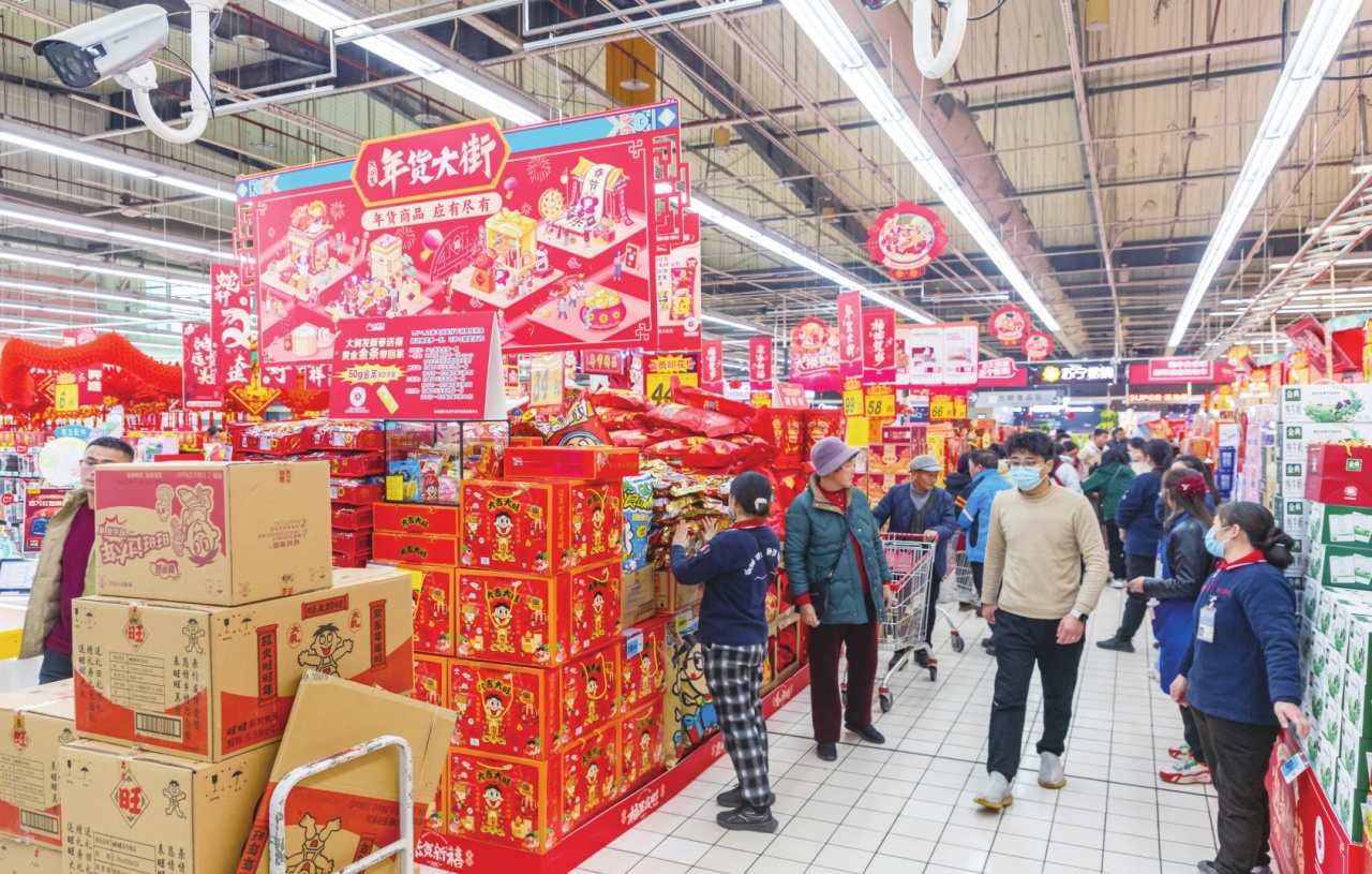 现场弥漫着浓厚的春节氛围,货架上摆满了琳琅满目的年货,从各式各样的糖果、坚果到精美的礼盒、春联、窗花等,无不吸引着市民驻足选购。大家忙着为即将到来的新春佳节备足年货,脸上洋溢着喜悦与期待。“节日氛围很浓厚,来超市买了很多年货,还有鲜花,过春节就要把家里装点得漂漂亮亮,希望来年像花儿一样越来越美丽。”市民唐女士说。