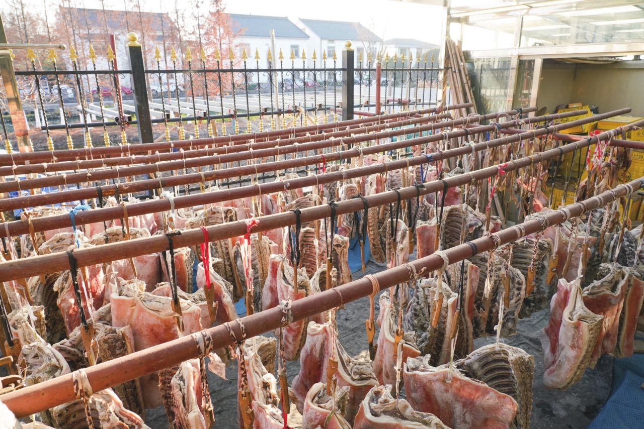 冬月来,腊肉香。在全国文明村——昆山市张浦镇金华村,村民家的院子内外,随处可见一方方沐浴在阳光中的腊肉,色泽红润,肉身干爽结实,令人垂涎欲滴。