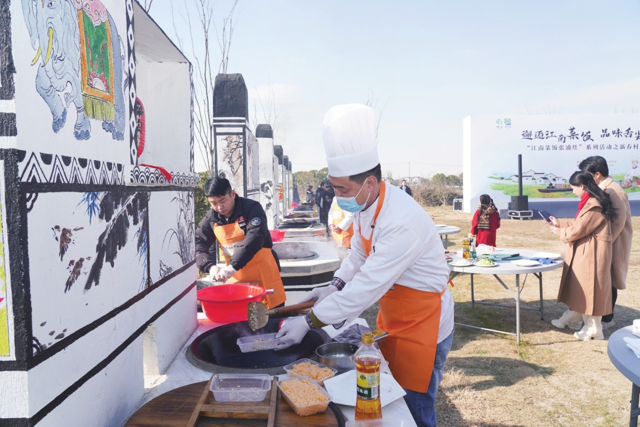 这几年,金华村积极发展乡村旅游。在村里的见花小院内,常有游客跟着当地居民学着炒一碗江南菜饭。老灶头上的灶画很美,灶火很旺,灶台上的美味随着炊烟袅袅四散弥漫。腊肉的咸香、青菜的清新、米饭的软糯和果品的香甜交织在一起,一碗热气腾腾的江南菜饭,勾起了多少人的味觉记忆。金华腊肉还融入了张浦镇高端食品产业的版图。除了村民们自己食用,一些腊肉还被运到了镇上的益海嘉里丰厨(昆山)食品产业园,加工成具有江南特色的腊肉菜饭,送上千家万户的餐桌。肥瘦相间的金华腊肉搭配新鲜的矮脚蔬菜、晶莹剔透的大米,在厨师们的精心烹饪及巧手装盘下,逐渐变成了一道道色香味俱佳的江南菜饭,香气四溢,让人垂涎欲滴。前不久,在“邂逅江南菜饭 品味舌尖非遗‘江南菜饭张浦灶’系列活动之新春村厨争霸赛”现场,专业厨师与民间厨师们或延续古法、或创意改良,将金华腊肉的鲜香发挥极致,烹饪出一道道腊肉美食,让评委团惊喜连连。