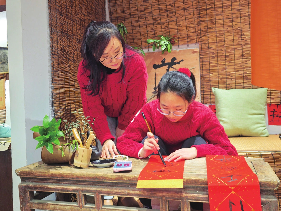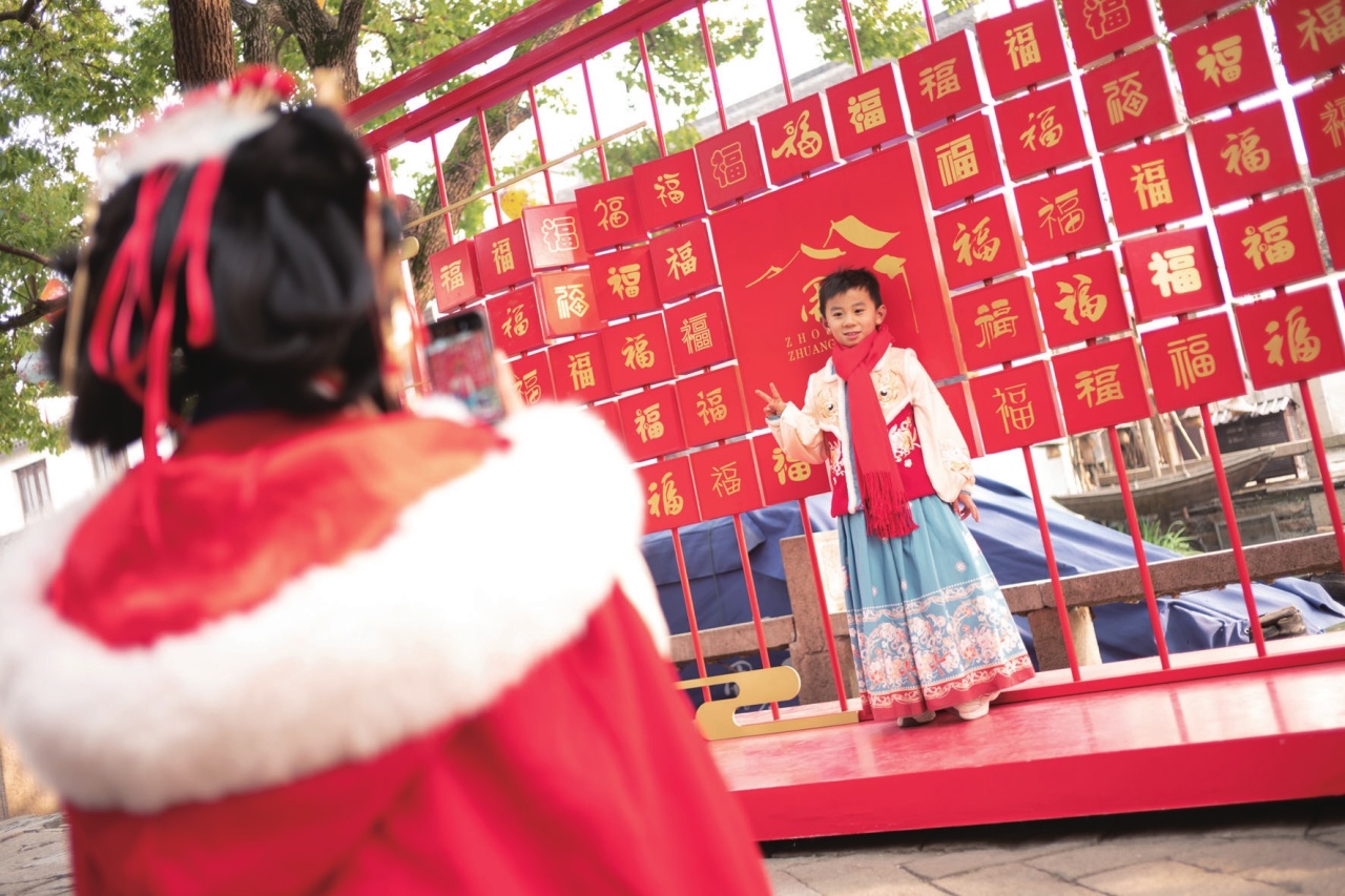 戏曲百戏博物馆、昆山当代昆剧院也装点上火红元素:拉出介绍镶嵌着红蓝宝石奢华凤冠的大幅海报、挂起配着喜庆可爱狮子头的灯谜、摆出融合了戏曲及蛇年元素的留影墙、竖起写着吉祥祝福语的立牌……每一个细节都饱含深厚的文化底蕴,让人满心满眼喜气洋洋。