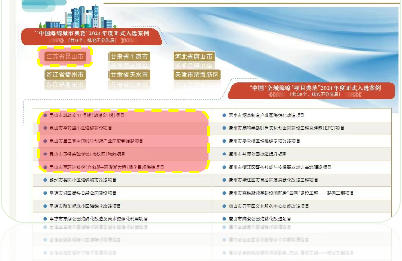 日前,《中国建设报》公布“中国海绵城市典范”及“中国‘全域海绵’项目典范”2024年度正式入选案例名单,昆山正式入选“中国海绵城市典范”名单,轨交11号线、平安里小区、玉峰实验学校、星巴克中国咖啡创新产业园配套道路、昆山市两环连接线(台虹路—阳澄湖大桥)等5个海绵建设项目正式入选“中国‘全域海绵’项目典范”名单。
