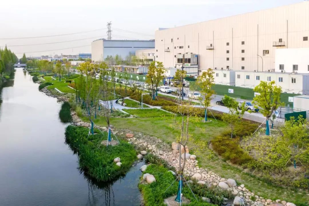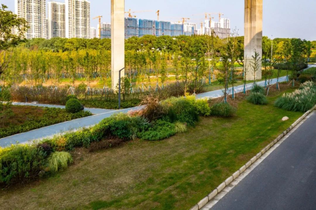 入选“中国‘全域海绵’项目典范”的轨交11号线项目以生态文明理念为指导,探索城市交通廊道更新方向,深度融合海绵城市建设理念,以圩区为基本单元,辐射沿线16个圩区288平方公里,成为昆山系统化全域推进海绵城市建设的超级生态廊道。平安里小区海绵项目在建设过程中以因势利导、随形就势为原则,结合景观设计手法,实现景观效果与生态功能的统一,打造兼具品质、艺术、生态的高颜值海绵区。玉峰实验学校南校区海绵城市建设项目以校园景观湿塘为调节主体,结合周边分散的附属绿地布置大面积下凹式活动绿地,将雨水引流至景观湿塘内,实现生态化的水处理和高效的动态景观效果。星巴克中国咖啡创新产业园配套道路海绵项目联动配套道路与周边水系、厂区地块,系统梳理雨水径流组织路径,将治水新理念与城市工业建设相融合。两环连接线(台虹路—阳澄湖大桥)海绵项目结合场地及道路断面条件,因地制宜设置雨水滞留池、下凹绿地、植草沟、人工湿地等海绵设施,有效提升沿线区域排水防涝安全水平。