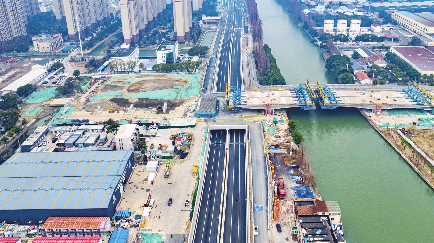 震川西路(古城路—环城西路)改造工程项目现场负责人潘锋介绍,节后,项目现场迅速从“休假模式”切换至“奋进模式”,各方人员陆续集结到岗。目前,项目已完成75%,主线路基、路面、桥梁、隧道全部完成,新城路大桥正在进行引桥现浇箱梁、主桥悬浇箱梁挂篮施工。