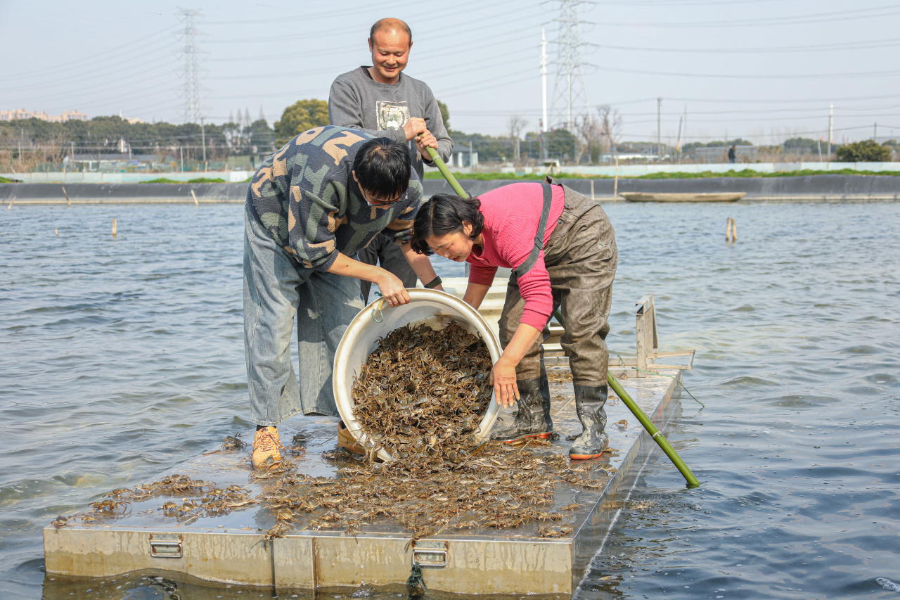 春季水温逐渐回升,是水产养殖生产的“黄金”时期。趁着春日好时光,广大养殖户抢抓春放春养的大好时机,采购蟹种、虾种和鱼苗,加快投放。“今年的扣蟹、青虾苗种品质都非常好,规格整齐、体格健壮、活动有力,来拿苗的养殖户看了都很满意,很快这些苗种就能去全市各个塘口‘安家落户’了。”市水产技术推广站副站长潘云生介绍。