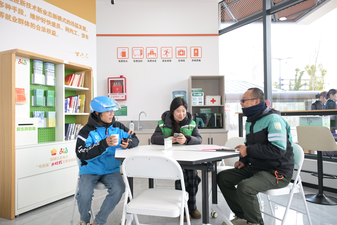 3月7日,国网昆山市供电公司举行“e起暖新 电亮鹿城”户外劳动者爱心e站启动仪式,正式揭牌启用爱心e站,为户外劳动者提供全天候暖心便民服务。