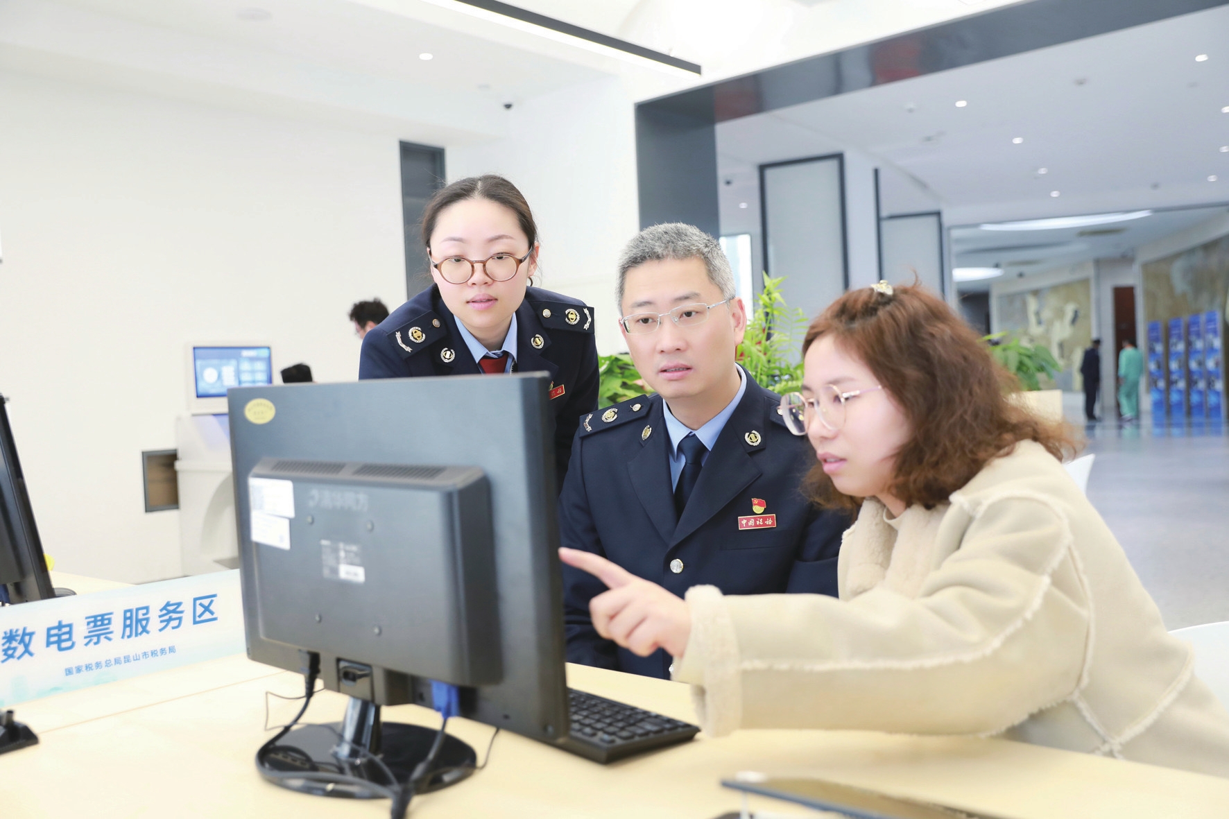 “昆山市场经营主体与税务干部量比超1000:1,要给予每位纳税人最好的办税体验,不光要在数智创新上出实招,还要在激活动力上挖潜能。我们组建青年党员、团员突击队,在高峰期和双休日轮班延时服务,单日最高处理2000余笔,提供坚实支撑。”沈黎亮介绍。