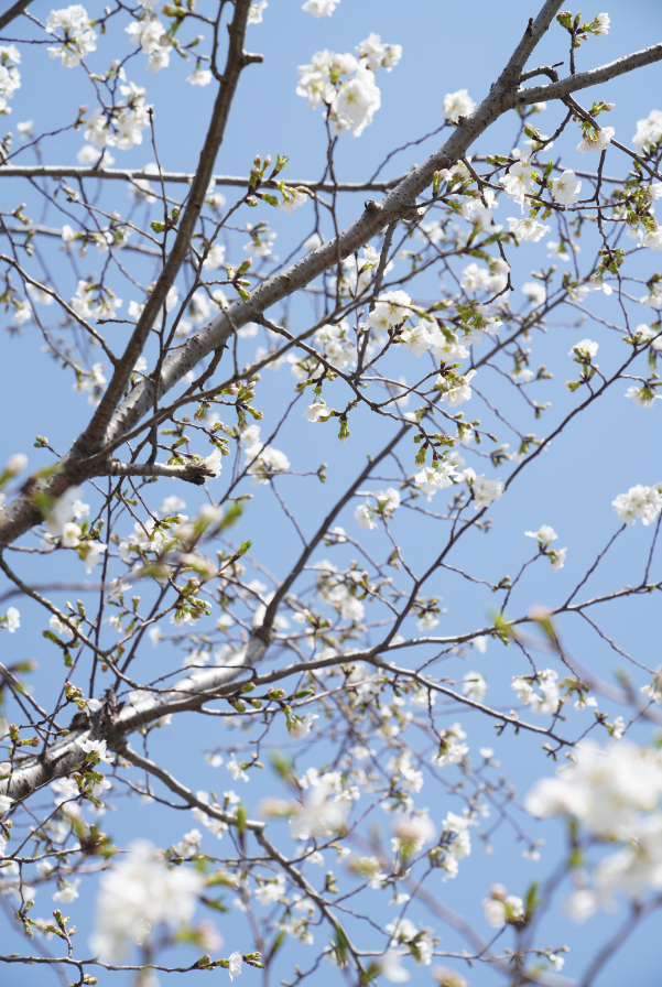 石桥畔垂下的一树樱花