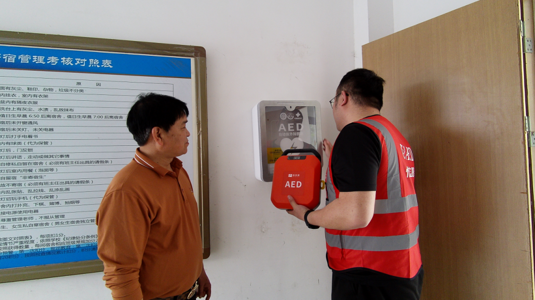 当天上午9时许,记者在柏庐高级中学看到,苏州市慈善总会AED急救志愿者们正有条不紊地进行设备安装工作。醒目的红色AED设备箱体被张贴在宿舍楼走廊,格外引人注目。箱内的除颤仪还配备了语音导航和动画指引功能,确保每一步操作都有清晰的语音提示,让施救者能够迅速上手。“这一智能设计可实时将设备状态回传至市急救中心平台,如同给校园配置了一位时刻在线的‘电子校医’,为设备的正常运行和及时使用提供了有力保障。”苏州市慈善总会AED急救志愿者姜逊介绍。