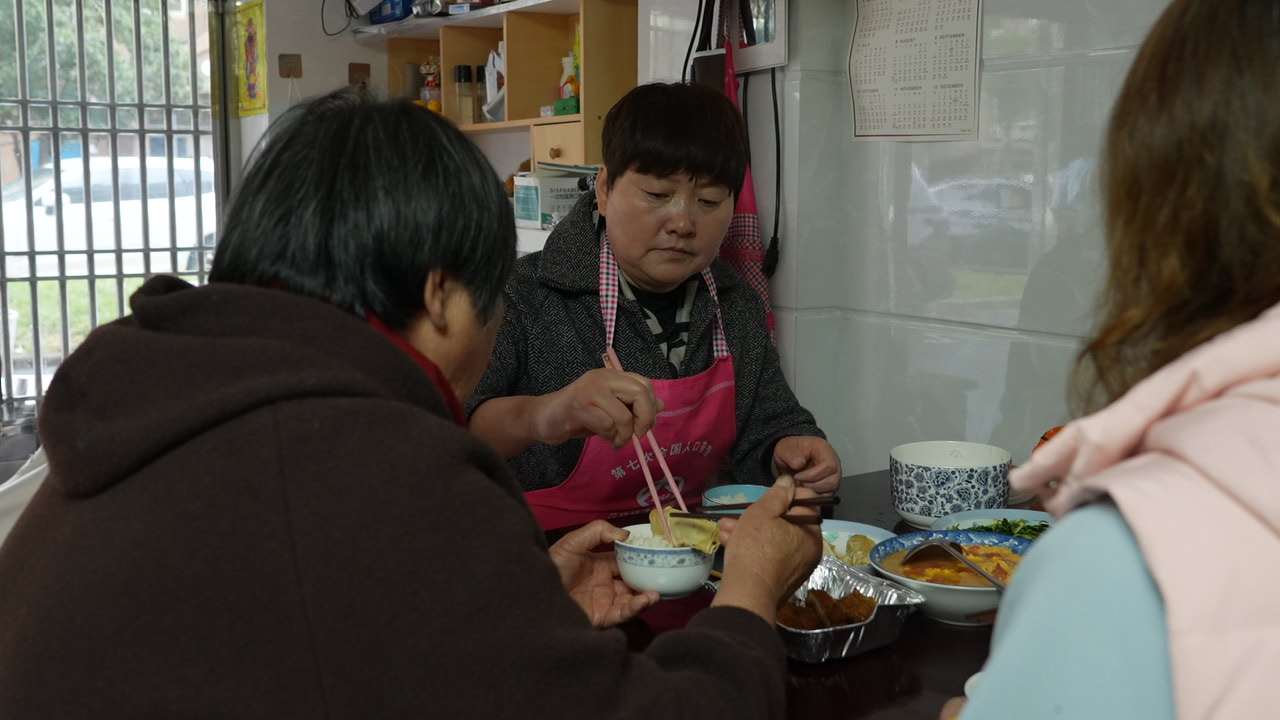 临近中午,张国芳在厨房忙忙碌碌准备午饭,备菜、炒菜、整理灶台……不一会儿午饭就烧好了。“准备吃饭啦!”伴随着张国芳的一声吆喝,一家人端菜、摆碗筷,然后围坐在一起用餐,画面简单而温馨。