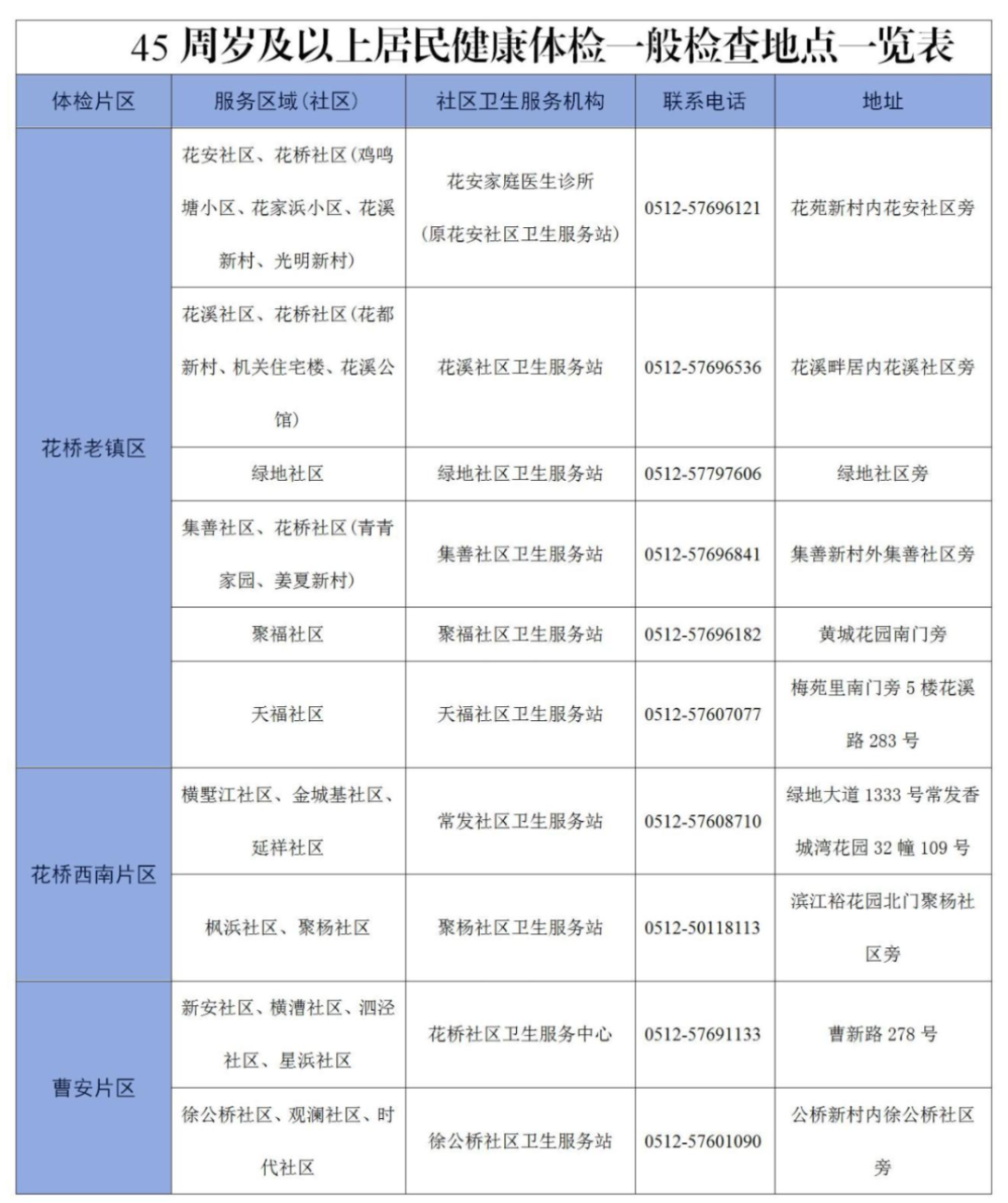 花桥老镇区(花桥、花安、花溪、集善、聚福、天福、绿地社区)及西南片区(金城基、横墅江、延祥、枫浜、聚杨社区):2025年3月中下旬起至2025年7月15日(周日及国家法定节假日除外),体检分为二期,保证体检服务有序衔接。