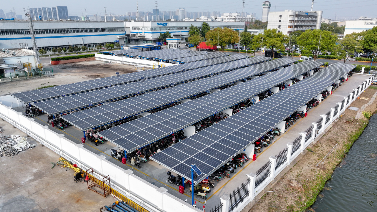 捷安特(中国)有限公司新落成的10座光伏充电车棚采用了“顶面发电、底层充电”的创新设计。车棚顶部安装有2000多平方米的高效光伏板,通过“自发自用、余电上网”的模式,形成了一个清洁能源的闭环系统。同时,车棚配备的智能充电桩接入了昆山“智行充”安全充电管理平台,具备实时监测高温、过载、短路等异常情况的功能,有效降低了充电过程中的安全风险。