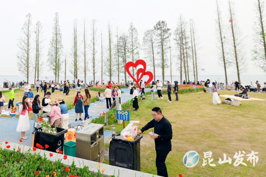 ▲淀山湖环湖大道,游客主动将垃圾投入垃圾桶