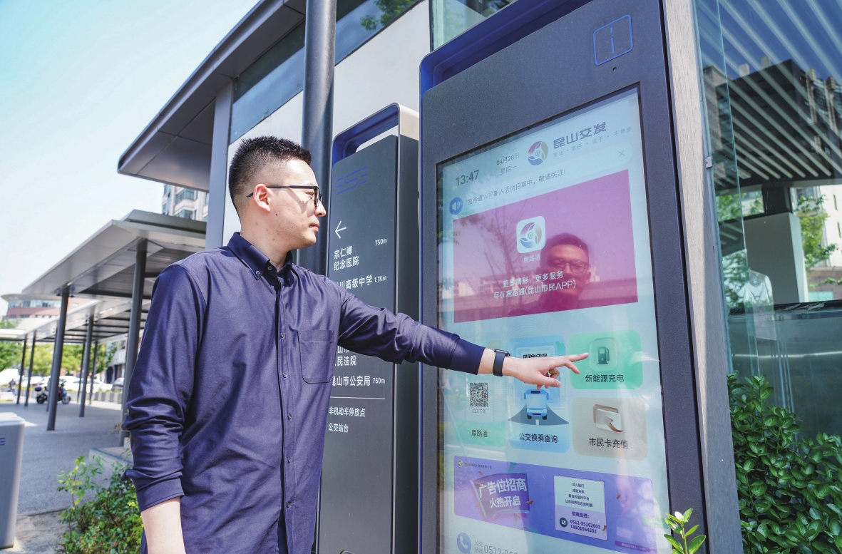 城市服务有亮度,更要有温度。“一屏统管”系统的智慧化既服务民生,也赋能城市管理。“鹿路通”APP是昆山便民服务总入口,目前建有政务办事、交通出行、医疗健康、民生服务、旅游休闲、教育在线六大类650余项服务。站台的远程视频监控可实时进行客流数据采集与分析,辅助公交动态调度;设备状态监测模块能自动预警硬件故障、网络异常等问题,保障设施稳定运行。