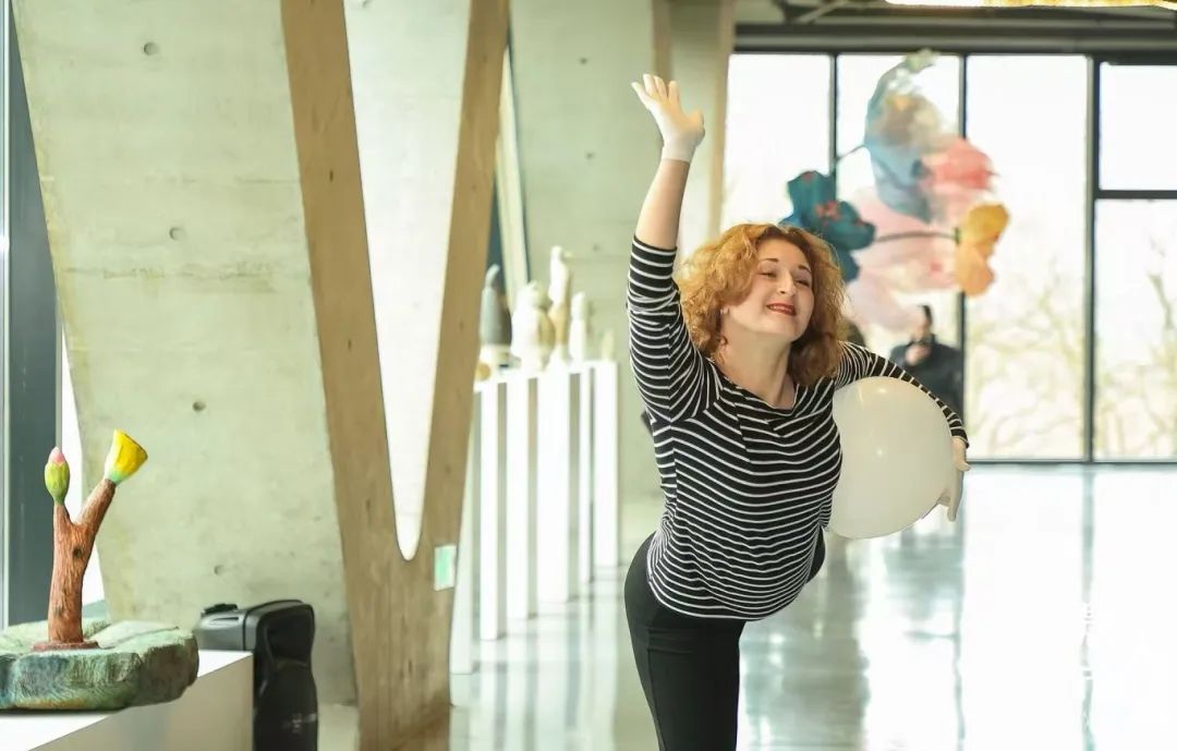 剧目情节:舞台上的黑白艺术家想要和观众打招呼,却被 “ 一堵看不见的玻璃墙 ” 挡住了;把雨伞当拐杖却被粘在了舞台上,她撑着雨伞在舞台上漫步,却被一阵从四面八方来的风吹得东倒西歪;她想玩气球,这个气球却重的出奇。她在舞台上困难重重的,却听到观众席笑声不断。