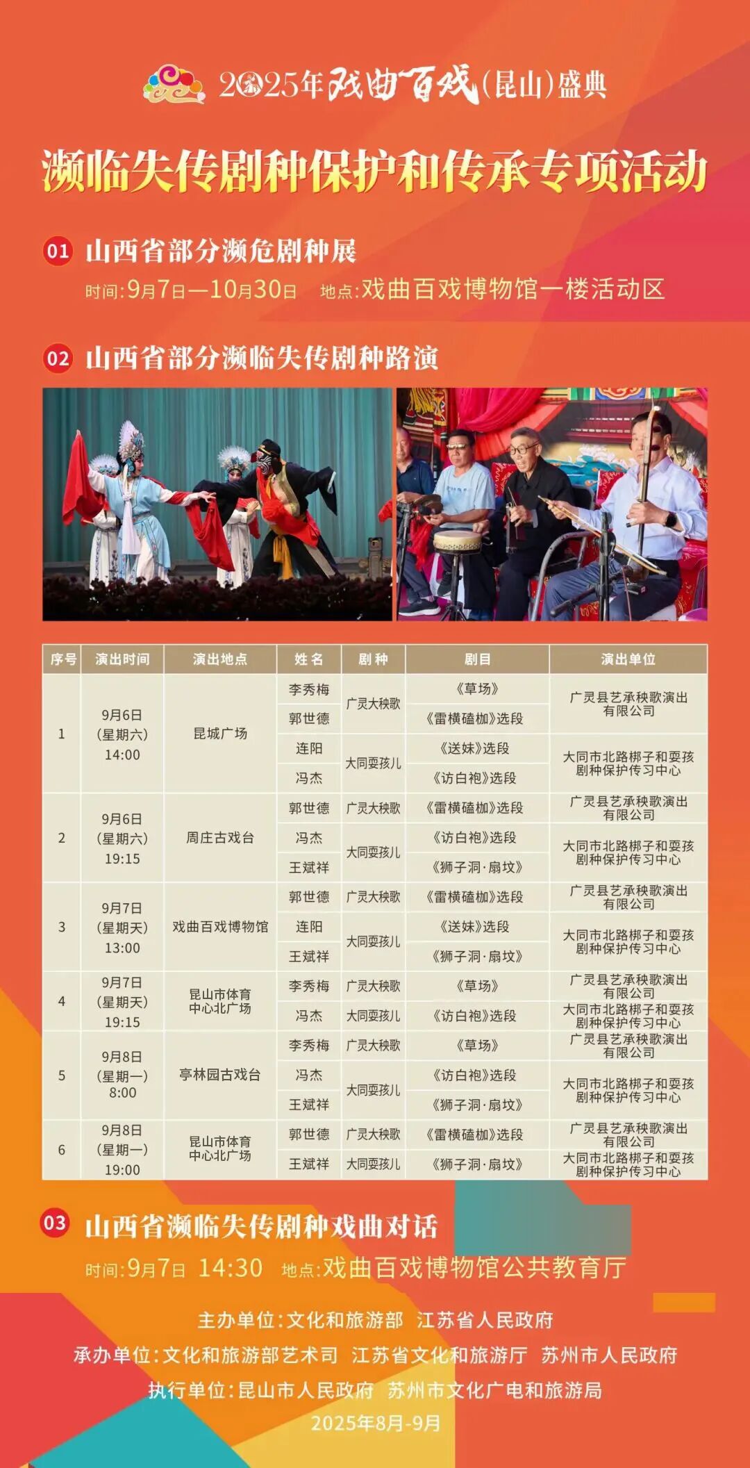汇中国百戏,展戏曲新颜。2025年戏曲百戏(昆山)盛典将于8月29日至9月20日,在“百戏之师”昆曲的发源地苏州昆山精彩上演。