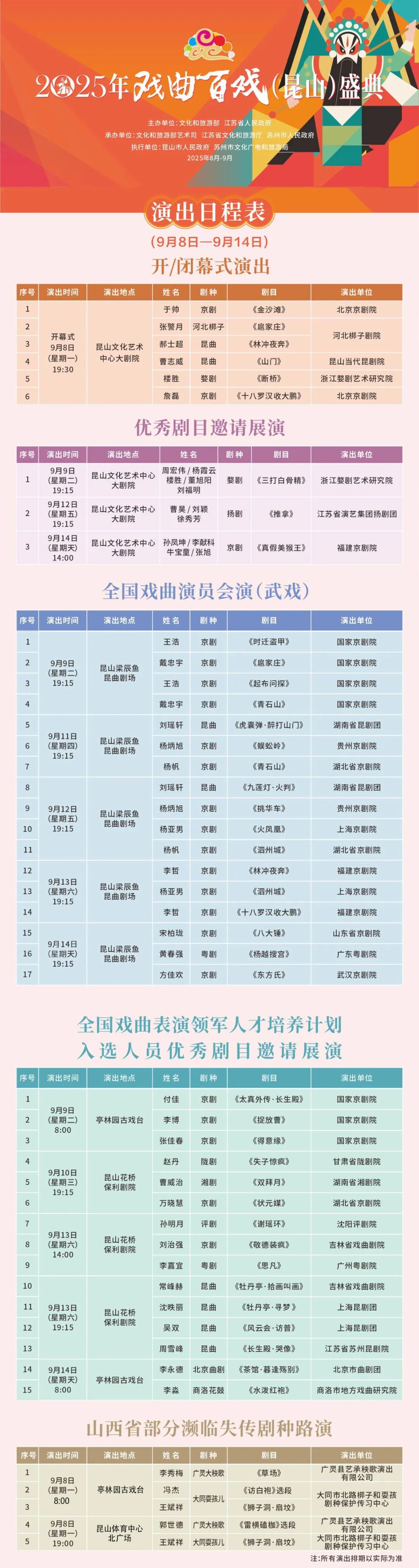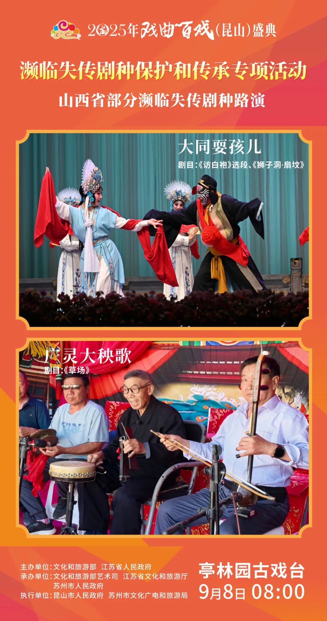 演出地点在亭林园古戏台和体育中心北广场,精彩地方戏曲送到家门口。