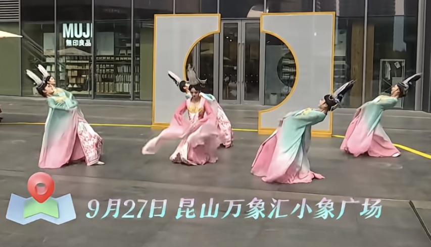 9月27日中午,昆山万象汇小象广场宋乐悠扬、裙幄翻飞,“秋韵万象 只此周庄”主题路演精彩启幕。身着宋制服饰的演员以曼妙舞姿与悠扬乐声,带观众沉浸式穿越千年,感受宋韵文化与周庄水乡交融的独特魅力。
