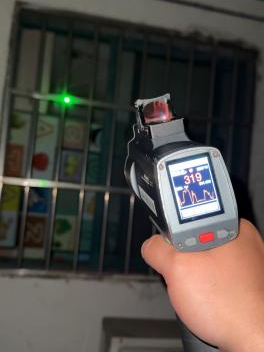抵达后,报修的居民直说家门口有味。“味道是在门口闻到的,还是家里也有?”李明一边安抚居民情绪,一边询问情况。顺着居民指引的方向,李明将排查范围锁定在楼道电表箱管道井。由于涉及住户多、现场情况复杂,李明立即呼叫两名同事携带乙烷分析仪支援。